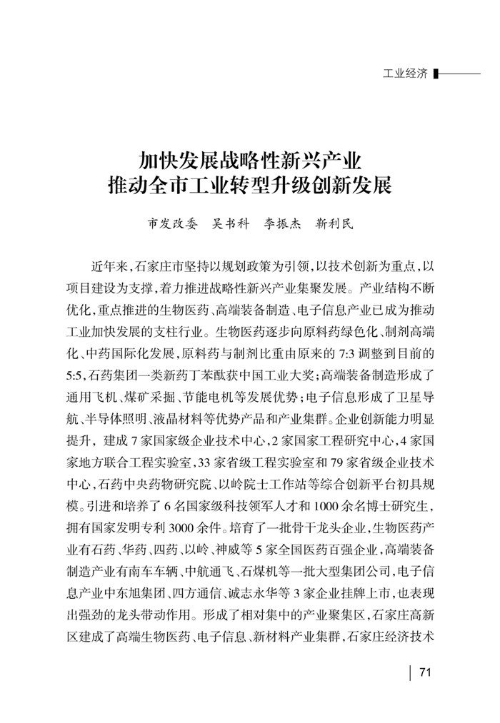 加快发展战略性新兴产业 推动全市工业转型升级创新发展
