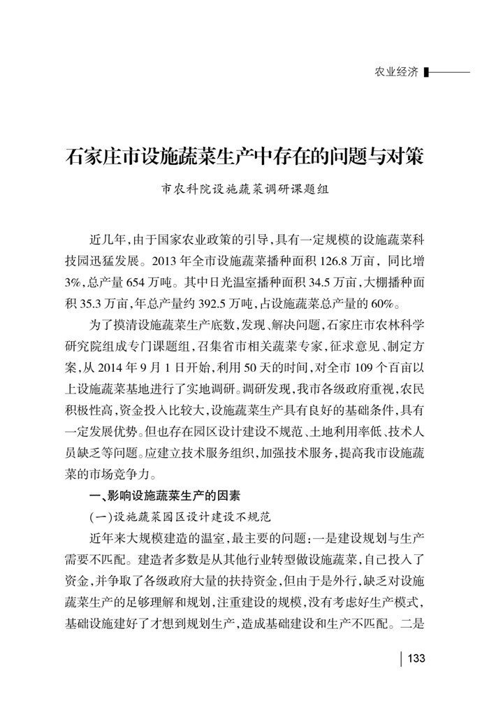 石家庄市设施蔬菜生产中存在的问题与对策