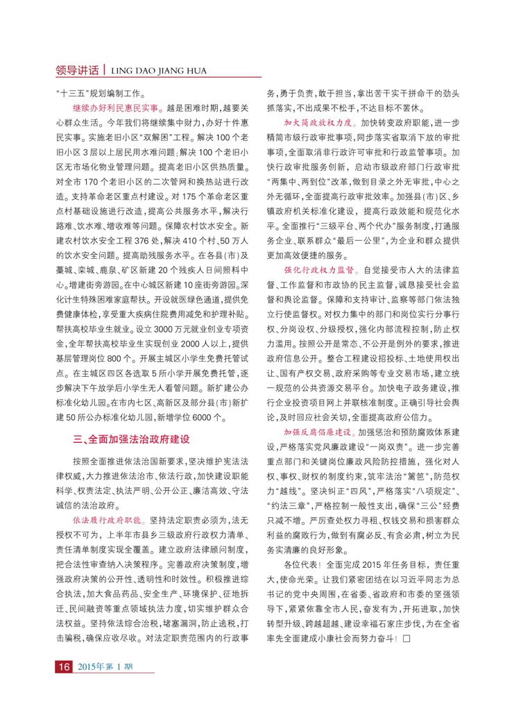 《石家庄经济2015-1》P4-16政府工作报告