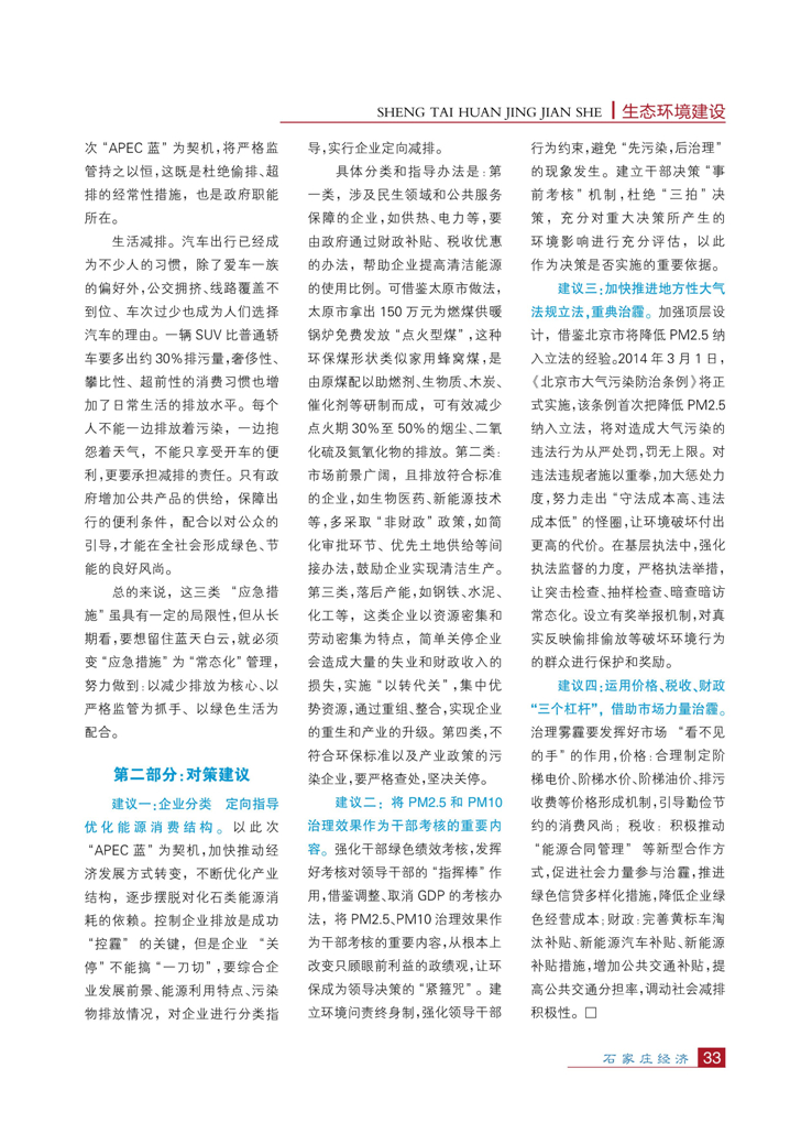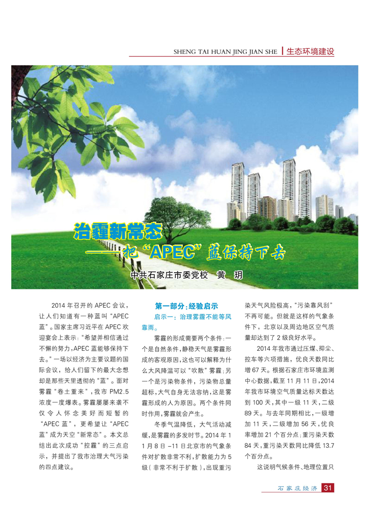 《石家庄经济2015-1》P31-33 治霾新常态 ——把“APEC”蓝保持下去