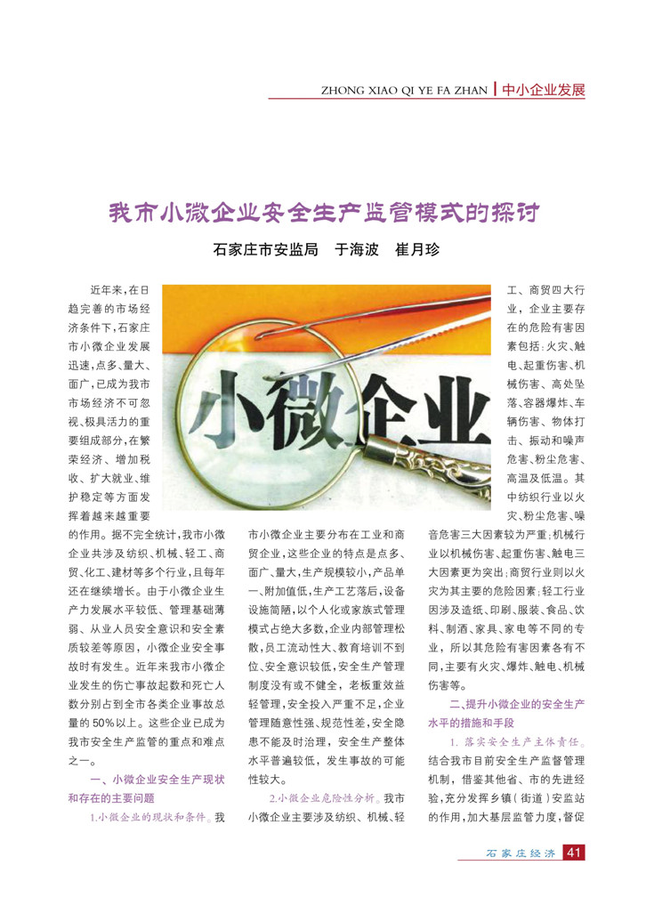 《石家庄经济2014-6》P41-42 我市小微企业安全生产监管模式的探讨