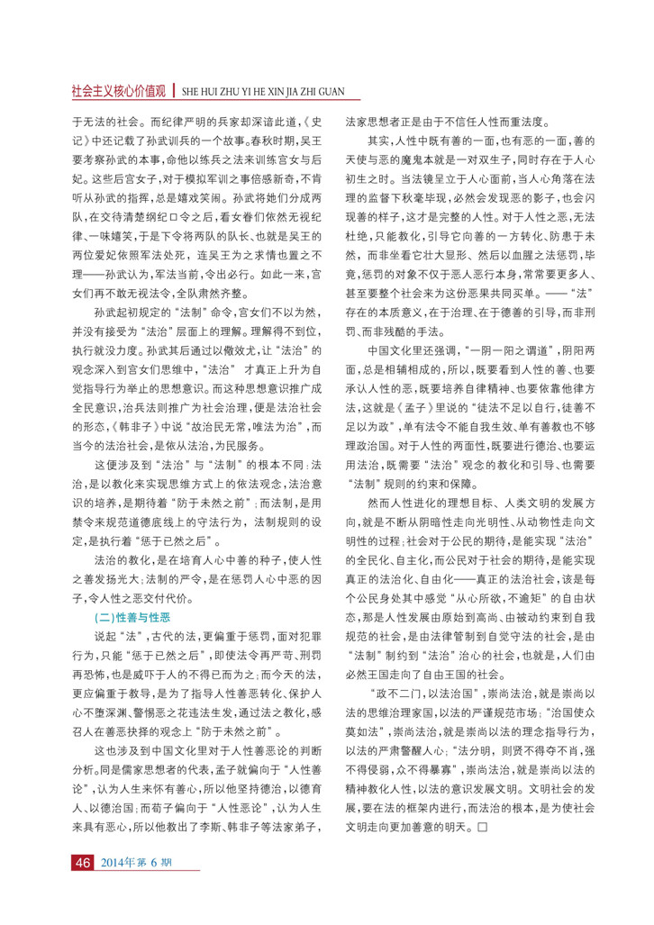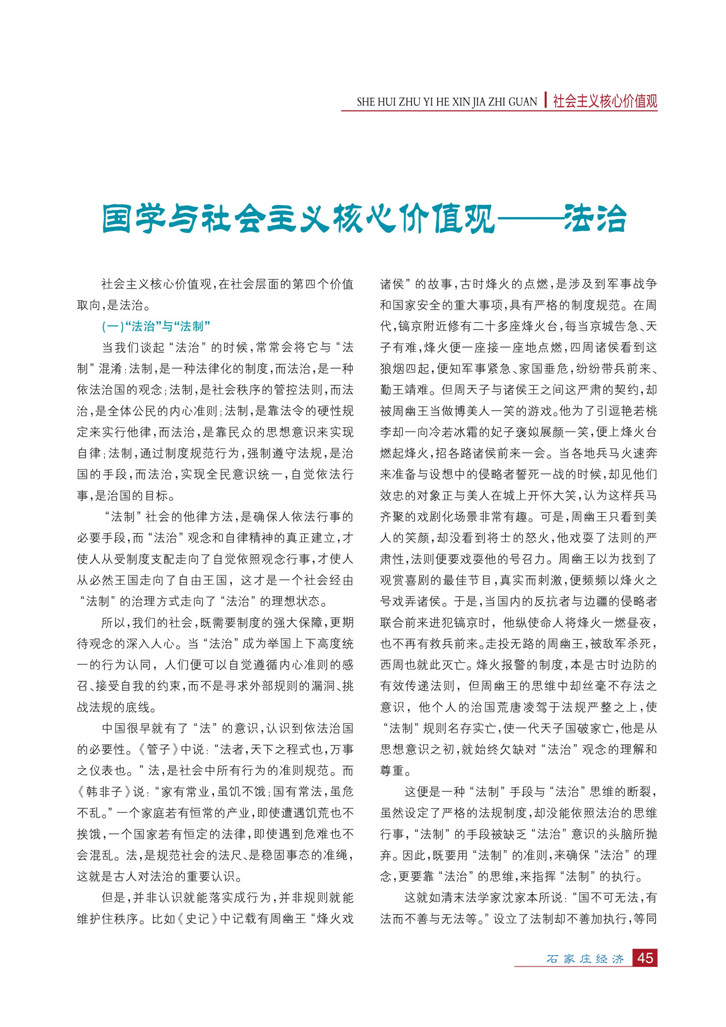 《石家庄经济2014-6》P45-46 国学与社会主义核心价值观——法治